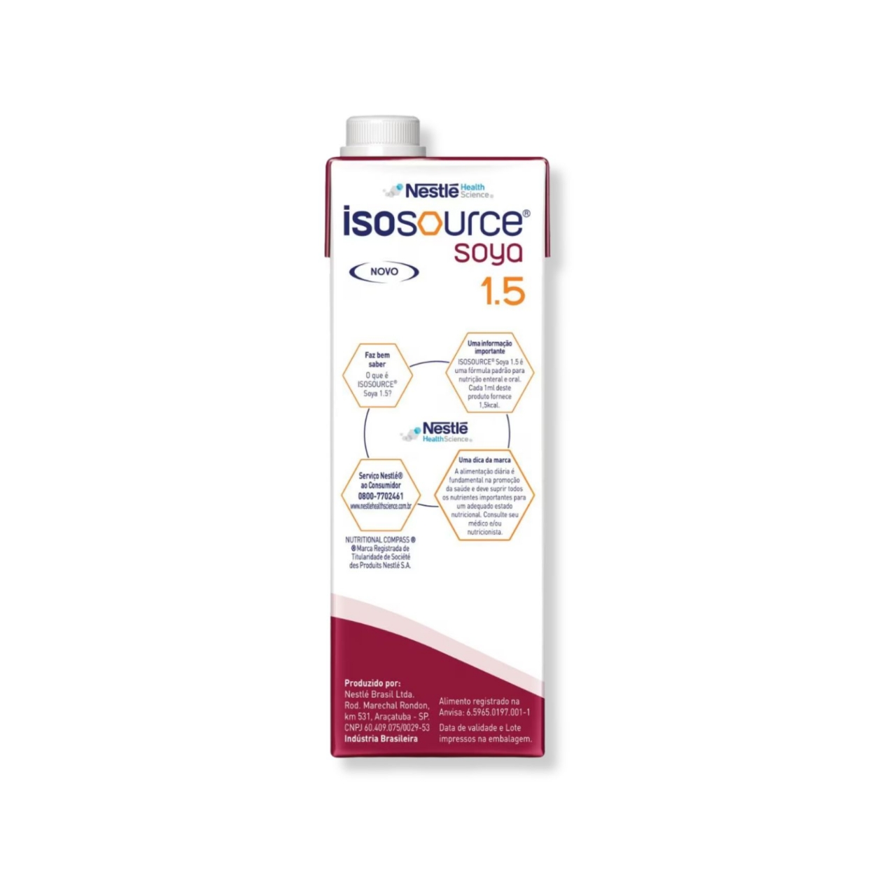 A Isosource Soya 1.5 é uma fórmula hipercalórica (1,5 kcal/mL) à base de proteína isolada de soja, indicada para auxiliar na manutenção ou recuperação do estado nutricional de pacientes com ingestão alimentar reduzida ou maiores necessidades energéticas.